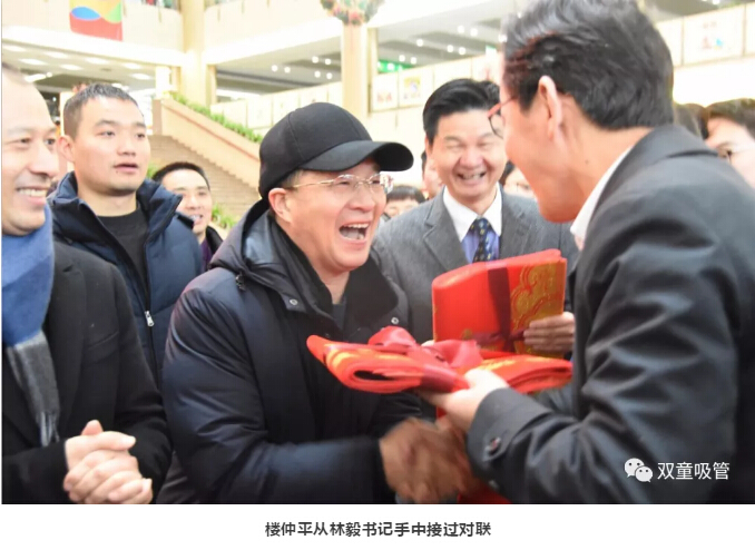 “雙童”樓仲平也受邀前往國(guó)際商貿(mào)城四區(qū)參加開(kāi)市儀式,從林毅書記手中接過(guò)對(duì)聯(lián),新的一年大吉大利,步步高升!