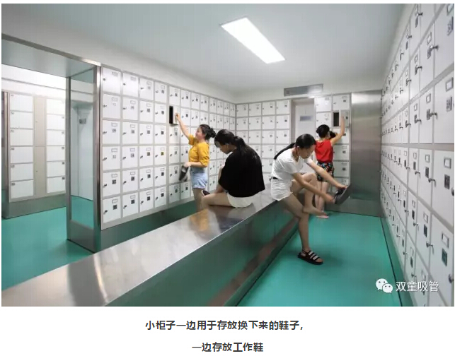 1、員工進(jìn)入車間的第一步,就是要在更鞋區(qū)將自己的鞋子換為工作鞋。