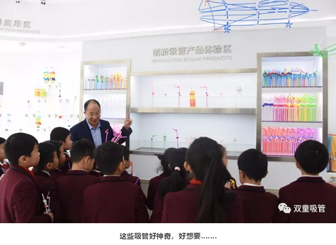 參觀結(jié)束后,“雙童”樓仲平也向孩子們說(shuō)道:再過(guò)一段時(shí)間,“雙童”將會(huì)推出可以“吃”的吸管,喝完飲料以后可以選擇將吸管“吃”下。聽(tīng)到這大家紛紛問(wèn)道:是不是巧克力味的......這根能“吃”的吸管讓孩子們十分激動(dòng)和期待呢!