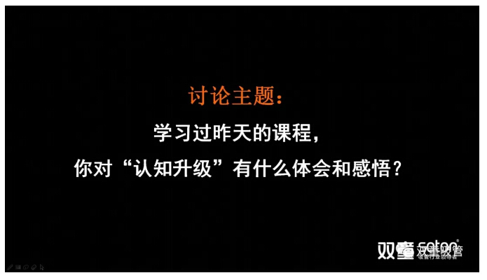 在聽完傅盛老師的課程之后,大家圍繞“你對‘認(rèn)知’升級”有什么體會和感悟”進(jìn)行分組討論,每位組員都要提煉表達(dá)出自己的觀點,各小組進(jìn)行總結(jié)后輪流進(jìn)行分享。