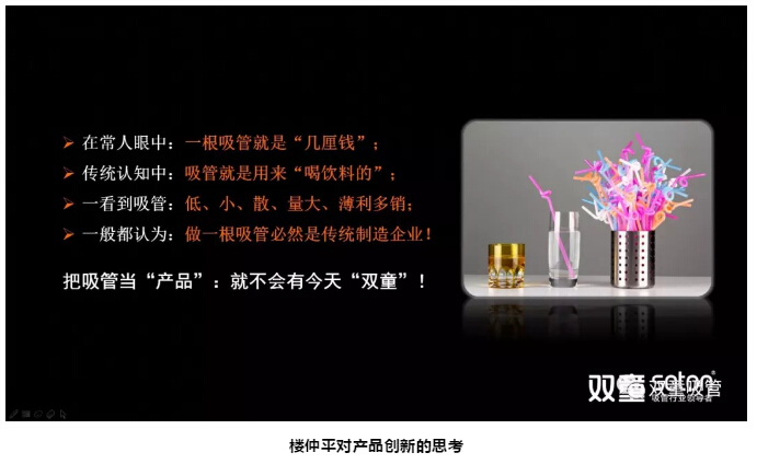 讓員工們自身對“產(chǎn)品”和“商品”有所思考之后,樓仲平以“一根吸管”為例,詮釋了全新思維的“產(chǎn)品認(rèn)知模型”: