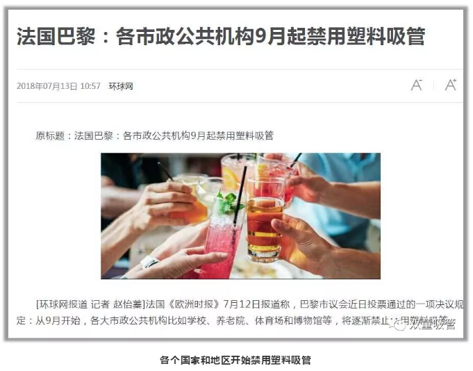 緊接著,越來越多的國家和機(jī)構(gòu)開始行動,如:法國、西班牙、新西蘭等國全面限塑,星巴克、麥當(dāng)勞、迪士尼等機(jī)構(gòu)也開始禁用塑料吸管……