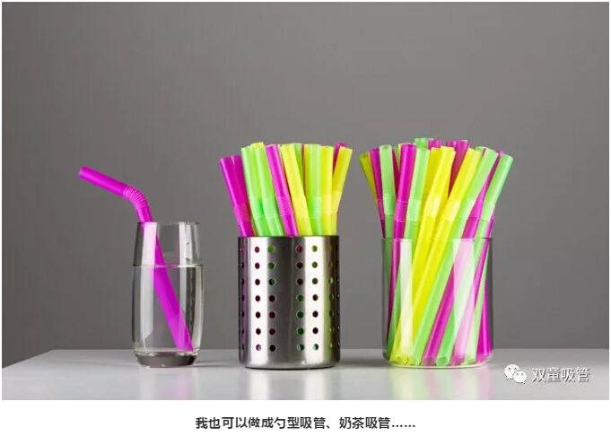 而且,在我的“父母”—“雙童吸管”的不斷努力下,現(xiàn)在的我不僅可以做成直吸管,還能做成彎吸管、勺型吸管、奶茶吸管等,我的光澤性和透明度足以媲美塑料吸管,能夠應(yīng)用于各類場合!