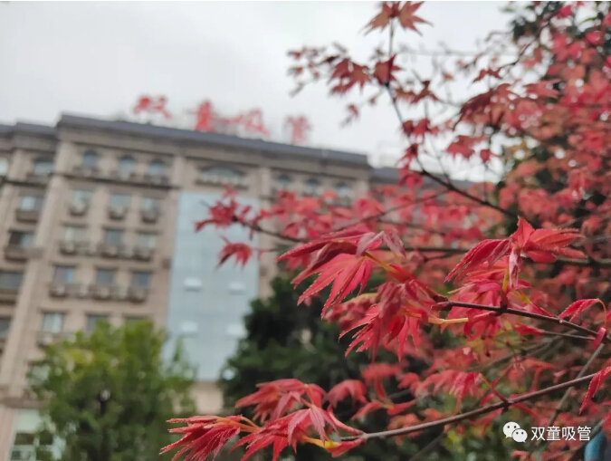 在楓葉的映襯下,“雙童”顯得格外美麗……