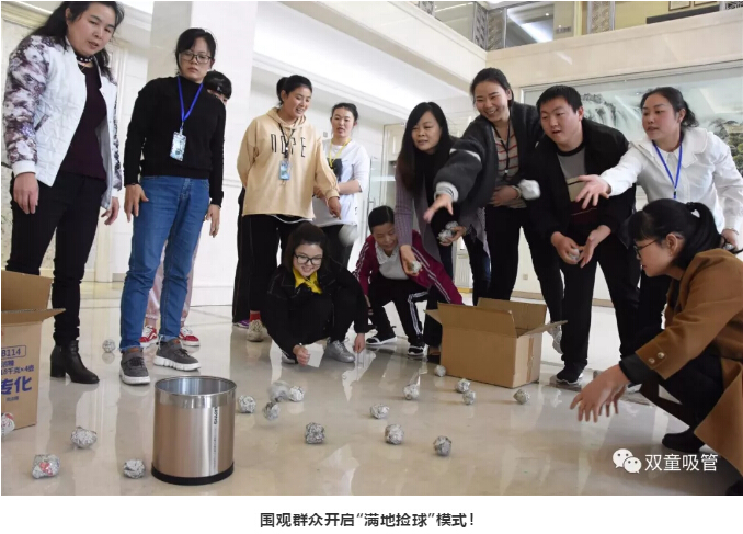 最后一個游戲就是“空桶投球”。這個游戲相信大家都不陌生,小時候在夜市上肯定有玩過,投中幾個球,就能換取小玩具!在這個游戲中,我們也發(fā)現(xiàn)了投球高手!吸管妞都忍不住想為他點贊!