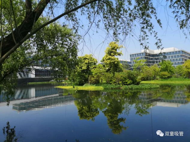 離開辦公區(qū),漫步在園區(qū)內,建筑、樹木倒影在水中,景色真是太美了!
