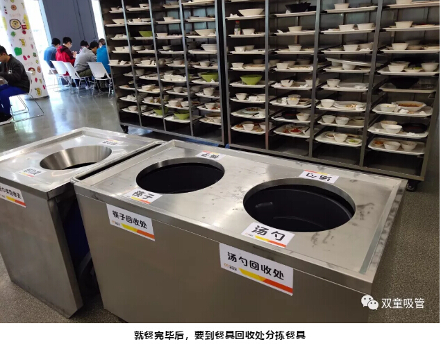 就餐結束后,我們跟著阿里員工來到餐具回收處,將紙巾、飲料瓶、筷子、湯勺等進行分揀,放入傳送帶中方可離開,不用洗碗的人生真是太幸福啦!
