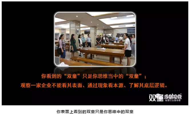 樓仲平以“雙童”為例:你所看到的“雙童”一切都是假象,如果你學了只有害處。“雙童”的餐桌是20000元一張,你可能會覺得一張桌子20000元很貴,但是你一定要洞透‘雙童’為什么會這么做,企業(yè)這樣做的底層邏輯在哪里,唯有你探究到它的底層邏輯,才是亙古不變。