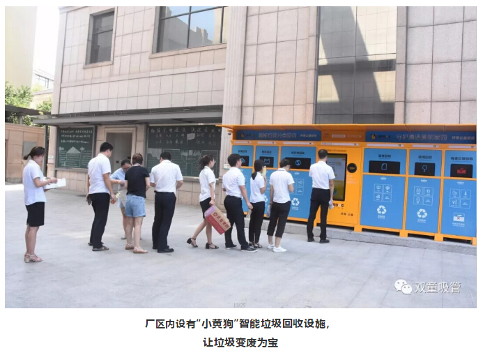 早在2009年,“雙童”就吹響了“垃圾分類”的號角,將廠區(qū)垃圾進(jìn)行精細(xì)化的分類回收、循環(huán)利用,可回收利用的紙板、塑料瓶等放到“可回收垃圾房”后一起出售,把不可回收的生活垃圾放到“不可回收垃圾房”一起運出。