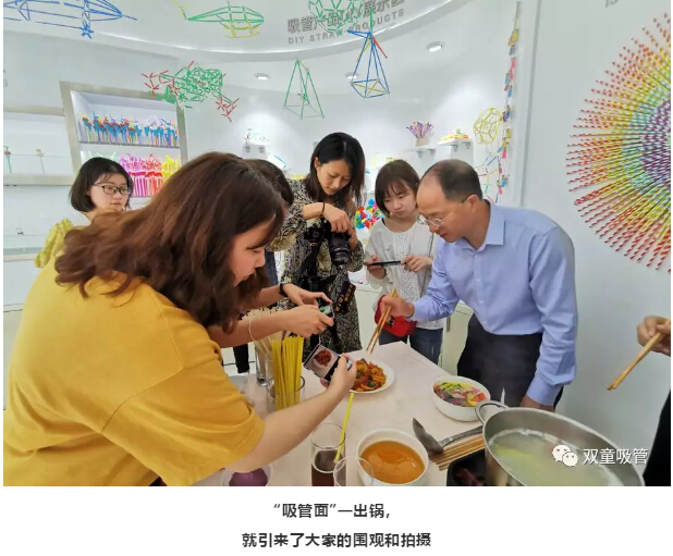 除此之外,樓仲平還提到:這款吸管的另一種吃法就是可以像面條一樣煮著吃,湯面還是意面可根據(jù)喜好自由選擇!聽到這,現(xiàn)場的記者們都十分驚訝!
