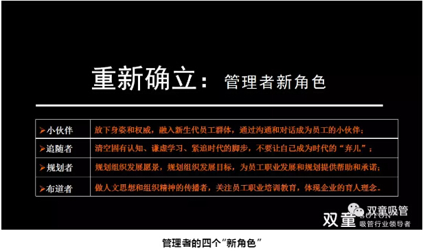 哈嘍,大家好!今天吸管妞給大家?guī)?/span>“雙童”人才觀系列文章的第一篇:《管理者的四個新角色》!首先,吸管妞先和大家分享一張圖片: