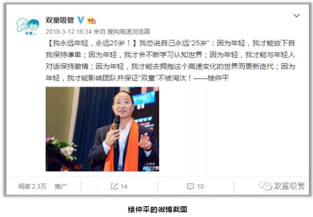 所以,樓仲平一直堅持向年輕人學習,創(chuàng)建與年輕人對話和溝通的能力,永遠將自己定位在25歲,緊追時代步伐,不讓自己成為時代的“棄兒”!