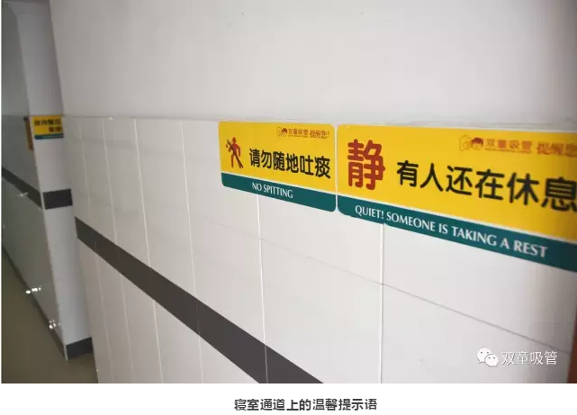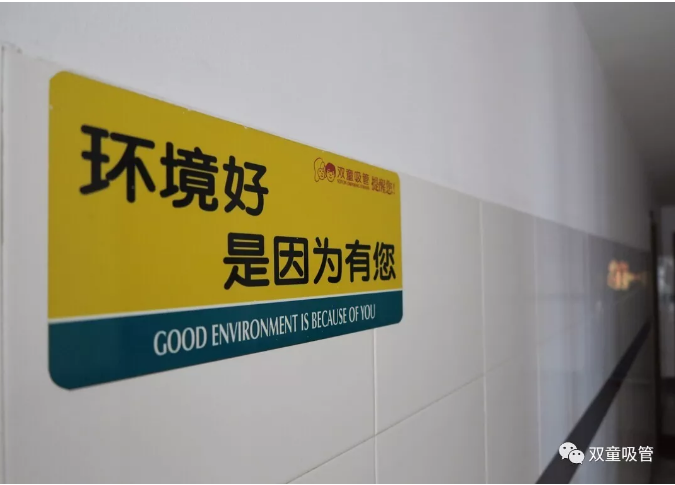 走進(jìn)“雙童”廠區(qū),第一印象是環(huán)境很整潔、衛(wèi)生。在員工宿舍區(qū),裝修了十多年的白墻有些泛黃,卻找不出一個(gè)手印或鞋印。這是為什么?樓道口的一塊標(biāo)語(yǔ)牌似乎道出了答案:環(huán)境好,是因?yàn)橛心?/span>