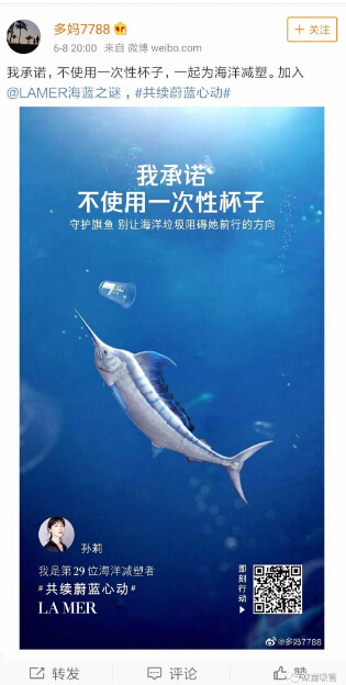明星們也參與到海洋減塑運動中來