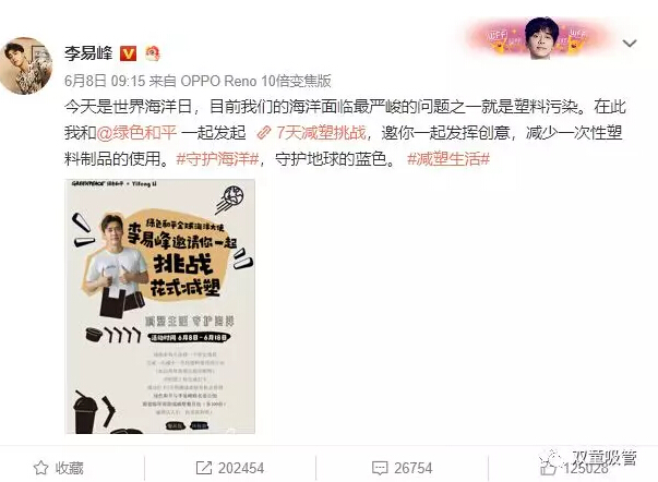 李易峰邀你參加7天減塑挑戰(zhàn),試試這根環(huán)保的可食用淀粉吸管!