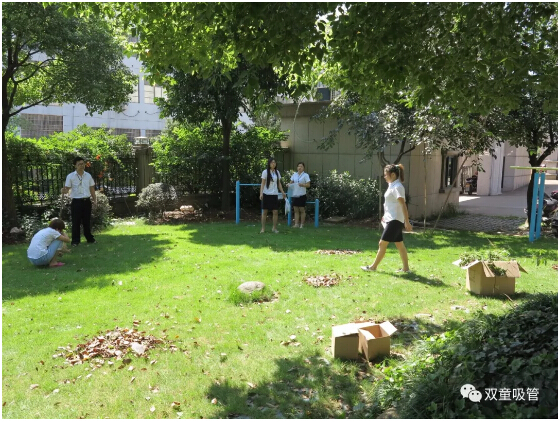 大掃除活動(dòng)中員工對(duì)落葉殘枝進(jìn)行收集