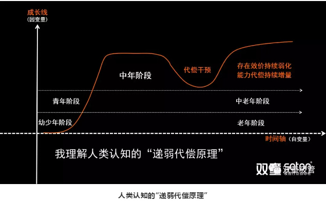 在這個過程中,如果人類想要改變這一自然的“墮變規(guī)律”,就必然需要通過“代償干預(yù)”,對自身進行不斷地調(diào)整和干預(yù),從而讓認知能力從“下墮”走向“上揚”,讓能力代償持續(xù)增量!