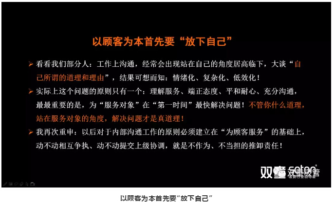 所以,管理者們不要把自己當(dāng)成高高在上的領(lǐng)導(dǎo),而是把自己當(dāng)成一線員工的服務(wù)者,管理者唯有建立“為下屬服務(wù)、為對(duì)象服務(wù)、引導(dǎo)團(tuán)隊(duì)共同成長(zhǎng)”的意識(shí)才能真正實(shí)現(xiàn)為顧客服務(wù)。以顧客為本首先要“放下自己,為“服務(wù)對(duì)象”在“第一時(shí)間”最快為員工解決問題!
