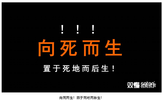 在這次變革中,“雙童”第一次破天荒提出了以“死亡”為假設(shè)命題,引進(jìn)“向死而生,置于死地而后生”的概念讓團(tuán)隊(duì)意識(shí)到自己所面對(duì)的危機(jī),從而讓員工和組織管理層認(rèn)知到死亡即將到來之時(shí),激發(fā)團(tuán)隊(duì)產(chǎn)生強(qiáng)烈危機(jī)感,從而實(shí)現(xiàn)對(duì)組織管理的及早干預(yù),以此推動(dòng)企業(yè)獲得“生”的能力,獲得組織生命的延伸!