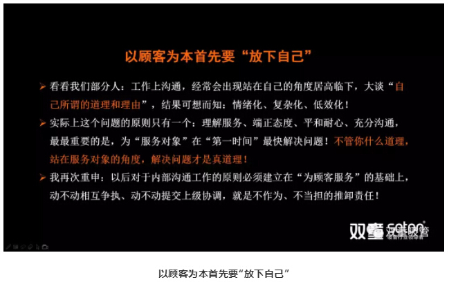 李二橋分享到,在座的各位首先要認知到誰是你的服務對象,在認清服務對象之后,再遵循“以顧客為本”的核心價值觀,在第一時間為服務對象解決問題。