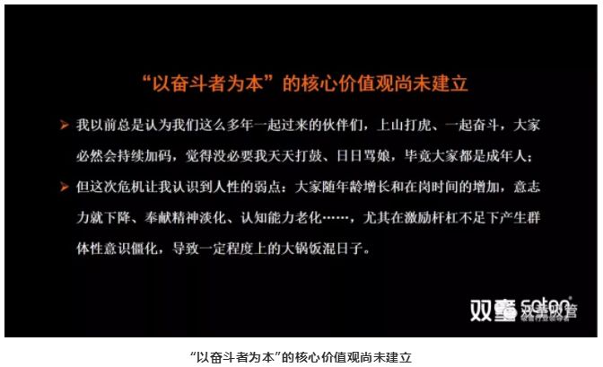 隨后,李二橋又分享了“雙童”亟待解決的第三個問題:“以奮斗者為本”的核心價值觀尚未建立。