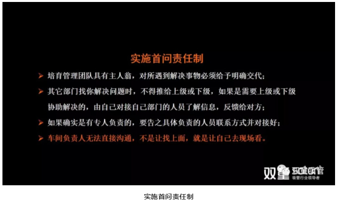 培育管理團隊具有主人翁,對所遇到解決事物必須給予明確交代; 其它部門找你解決問題時,不得推給上級或下級,如果是需要上級或下級協(xié)助解決的,由自己對接自己部門的人員了解信息,反饋給對方; 如果確實是有專人負責的,要告之具體負責的人員聯(lián)系方式并對接好;車間負責人無法直接溝通,不是讓找上面,就是讓自己去現(xiàn)場看。