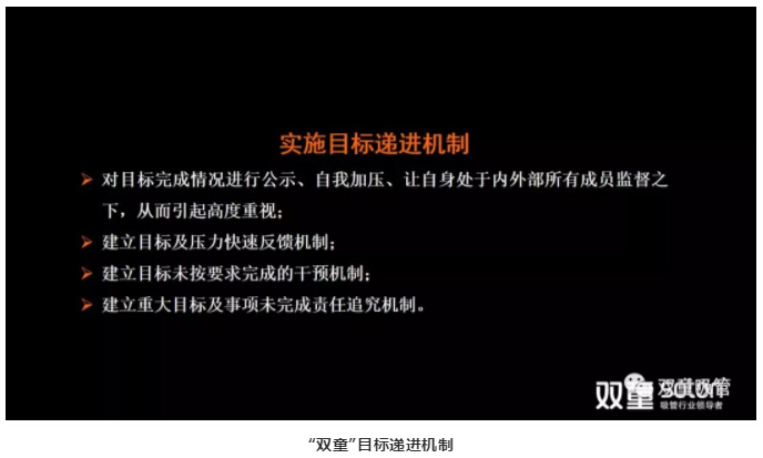 目前,公司目標完成情況沒有公示,大部分人對目標進度都不了解。后續(xù)“雙童”也將建立明確的目標未完成干預機制和健全的重大目標事項未完成責任追究機制,將責任追究到人,壓力分攤到人,從而實現(xiàn)反向激勵,讓所有成員發(fā)揮最大的能力實現(xiàn)目標。