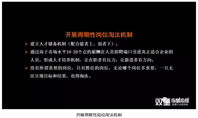通過高于市場水平的薪酬在人員招聘端口引進真正適合企業(yè)的人員,形成人才培養(yǎng)機制,讓在職者有壓力,讓新進者有方向; 沒有所謂重要的崗位,只有勝任的崗位,無論哪個崗位多重要,一旦無法呈現(xiàn)目標和結(jié)果,也得淘汰。
