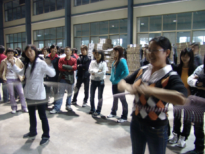 大會(huì)結(jié)束后,由工會(huì)劃撥費(fèi)用,并組織全體員工的娛樂活動(dòng)開始了,首先進(jìn)行的是拔河比賽;拔河比賽按照口杯車間與包裝車間,吸管車間甲班與乙班,再由各小組第一名之間比賽,供銷部與各科室比賽。