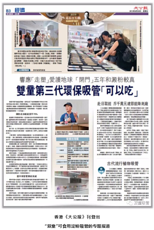 近日,香港《大公報(bào)》刊登出了《“雙童”第三代環(huán)保吸管“可以吃”》的專題報(bào)道,究竟小記者們?cè)凇半p童”發(fā)現(xiàn)了哪些精彩亮點(diǎn)呢?快跟著吸管妞一起來看看吧!