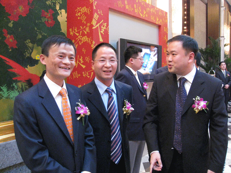 上圖為樓總和阿里巴巴總裁馬云(圖左)、英科控股總裁劉方毅(圖右)合影