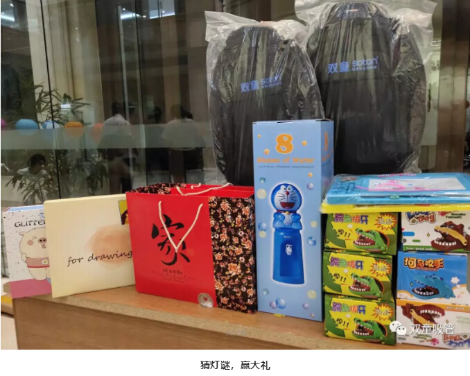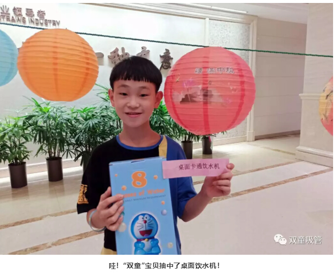 經(jīng)過校對謎底后,大家也紛紛的參與抽獎(jiǎng),有的人抽到了月餅,有的人抽到了桌面飲水機(jī),有的人抽到了.......接下來,吸管妞給大家曬一波“雙童”人捧回大禮的美照呀!