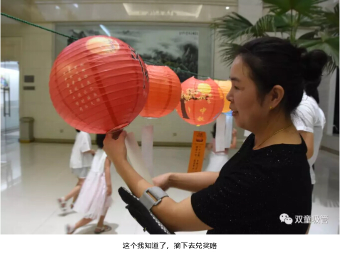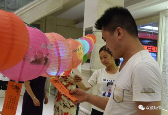 大家的聰明才智讓吸管妞佩服!沒過多久,大家就紛紛帶著燈籠下的燈謎,報(bào)自己猜的謎底前來兌獎(jiǎng)。猜對的可以有一次參與抽獎(jiǎng)機(jī)會(huì)。瞧!兌獎(jiǎng)處也是十分的熱鬧呢!