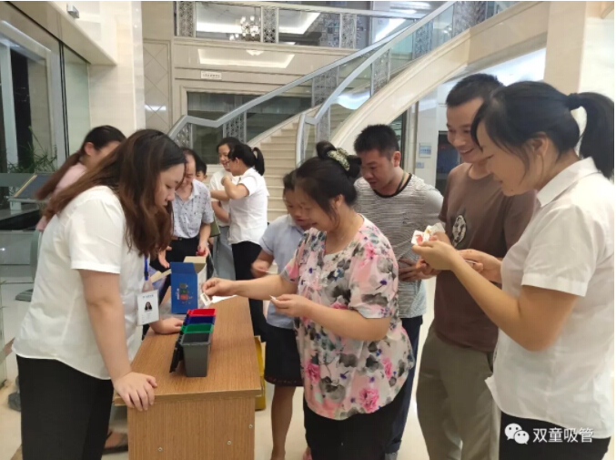實際上,“雙童”早在十多年前就實施了垃圾分類,將可回收垃圾、不可回收垃圾、生物質(zhì)垃圾、餐余垃圾、液態(tài)垃圾進行分類并將部分垃圾循環(huán)利用,員工們也受環(huán)境氛圍影響,養(yǎng)成了垃圾分類的好習慣!