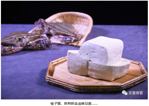 先用剪刀將梭子蟹剪成塊,待鍋中油燒熱后,放入配料和蟹一起翻炒。