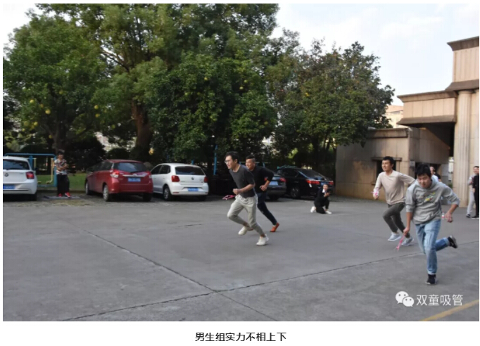 這時(shí),只聽(tīng)吸管妹妹一聲令下,大家火速?zèng)_出起跑線,瞧!比賽真的超激烈,男生組實(shí)力簡(jiǎn)直不相上下!