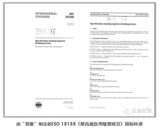 ISO 18188《聚丙烯飲用吸管規(guī)范》國際標(biāo)準(zhǔn)成為了全球吸管行業(yè)組織生產(chǎn)、驗收、評判和糾紛解決的全球性判定準(zhǔn)則,這意味著全球吸管行業(yè)的相關(guān)規(guī)則、驗收標(biāo)準(zhǔn)、評判依據(jù)均來源于“雙童”的技術(shù)數(shù)據(jù)?!半p童”也成為了浙江省唯一由單一企業(yè)承擔(dān)“行業(yè)標(biāo)準(zhǔn)、國家標(biāo)準(zhǔn)和ISO國際標(biāo)準(zhǔn)”的中小企業(yè)。