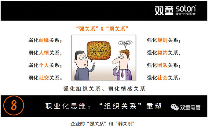 這樣的一種弱關(guān)系原則可以讓管理者將大部分的精力專注于企業(yè)內(nèi)部的管理,專注于事務(wù)解決,從而建立起一套健康發(fā)展的管理邏輯。