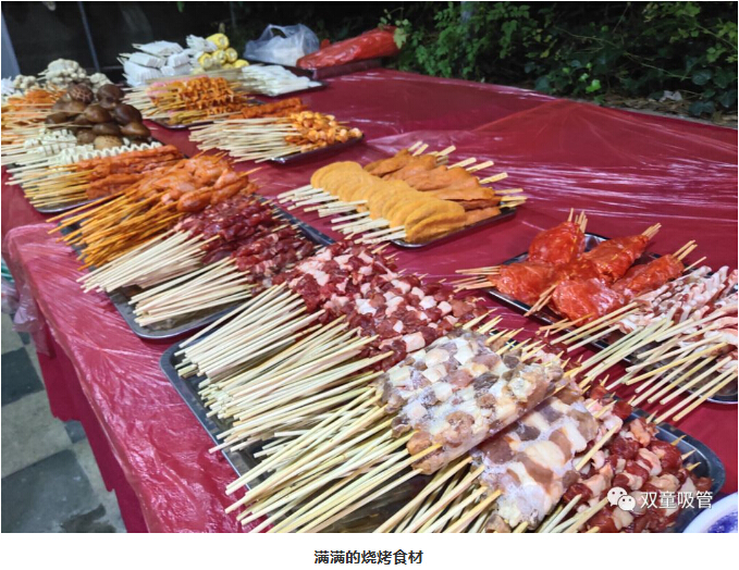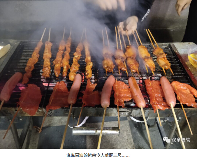 大家圍坐在烤爐前爭當“燒烤小販”,為壽星們進行服務(wù)。大伙手上的肉串還沒吃完,“燒烤小販”們已經(jīng)笑瞇瞇地把新烤好的肉串奉上了,吃都來不及,這是什么節(jié)奏!