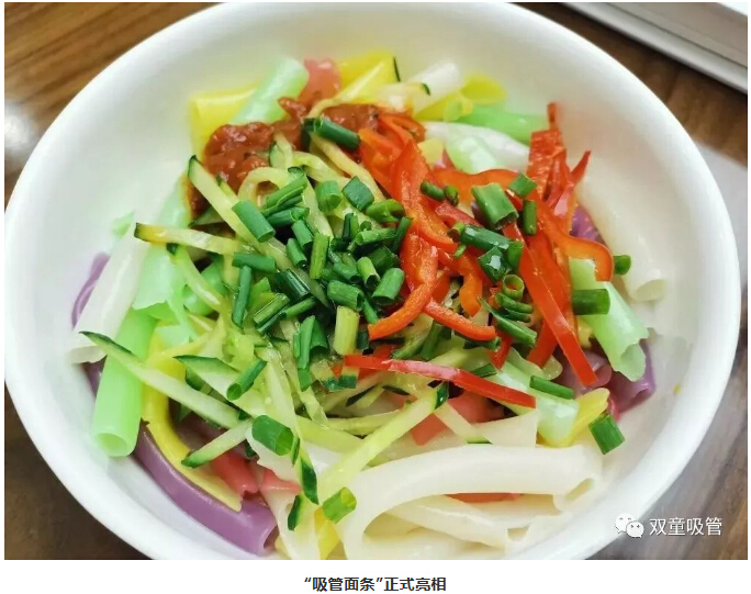 看!當(dāng)吸管妹妹端出了一碗“面條”時(shí),小記者們一涌而上,紛紛問(wèn)道:“這就是可以吃的吸管嗎?”,“我們可以試吃嗎”,“好想嘗嘗是什么味道的呀”......