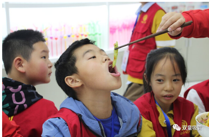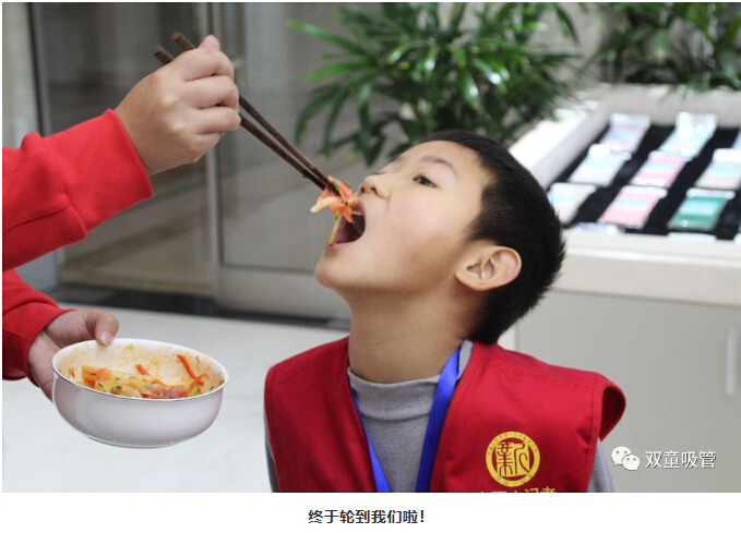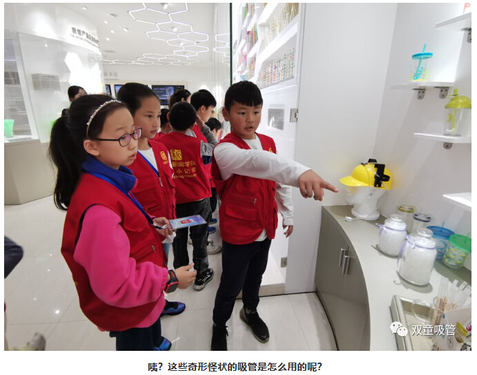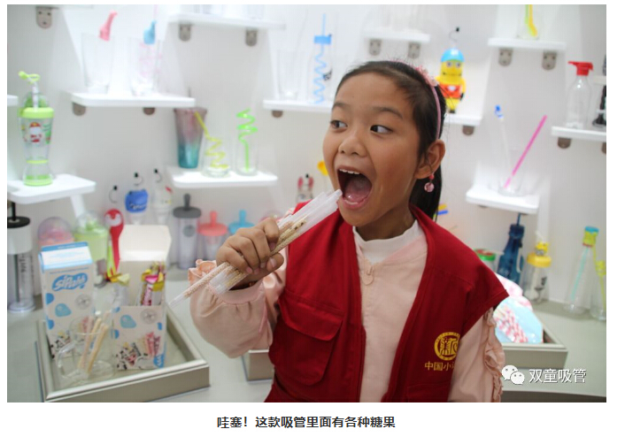 一走進(jìn)“雙童”產(chǎn)品展區(qū)時(shí),小記者們就在不停的尋找“雙童”可食用淀粉吸管。究竟這款“可以吃的吸管”藏在哪呢?