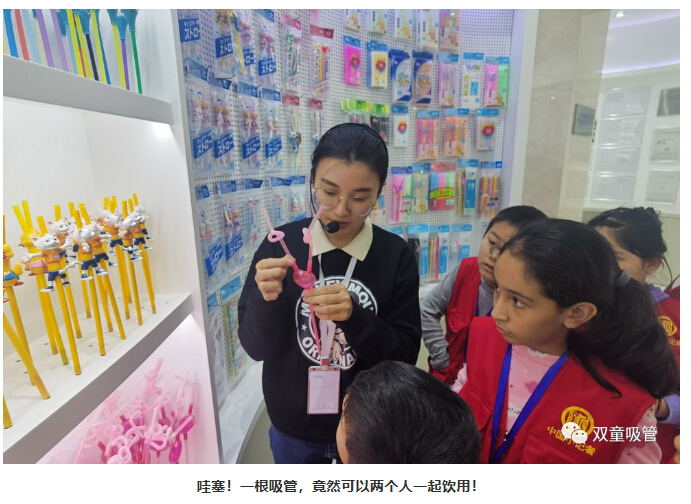 活動(dòng)結(jié)束后,這群小記者們遲遲未離開“雙童”廠區(qū),究竟又在做什么呢?原來(lái),大家是特地在中國(guó)吸管博物館門前為“雙童”的環(huán)保吸管代言呢!
