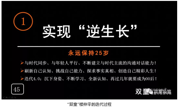“雙童”也是如此,在自然規(guī)律下會出現(xiàn)上述狀況。但“雙童”在25年的成長過程中,不斷打破自然規(guī)律,通過一次次變革蛻變進(jìn)行“不斷干預(yù)和修正”,讓團(tuán)隊(duì)認(rèn)知到雙童離“死亡”不遠(yuǎn)了,從而激發(fā)組織和成員思想活力,讓團(tuán)隊(duì)的認(rèn)知活性上揚(yáng),從而讓企業(yè)持續(xù)“活下去”!