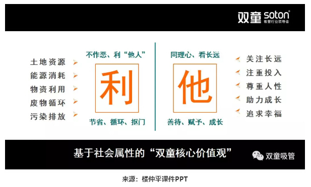 “雙童”為例:“雙童”樓仲平一直以來深受日本文化的影響,因此,經(jīng)營“雙童”26年的過程中,不斷的轉(zhuǎn)變,不斷的放棄,不愿做一家只能掙錢的大公司,而希望做一家有利于行業(yè)、有利于社會、有利于環(huán)境生態(tài)的好公司。
