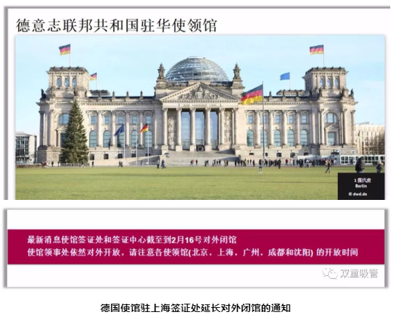 因春節(jié)期間突如其來(lái)的肺炎疫情影響,各國(guó)簽證中心都暫停了辦理簽證業(yè)務(wù)并拒絕中國(guó)公民入境。1月23日,上海簽證中心通知德國(guó)使館駐上海簽證處通知簽證中心截止至2月16日對(duì)外閉館,“雙童”的簽證被扣置。