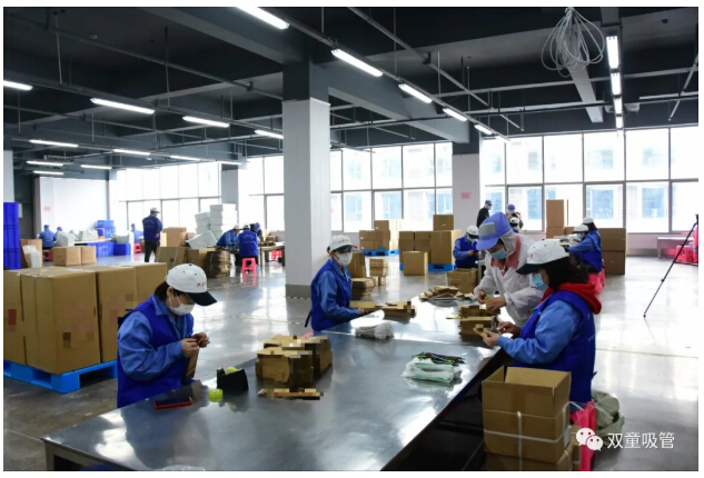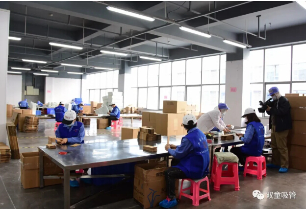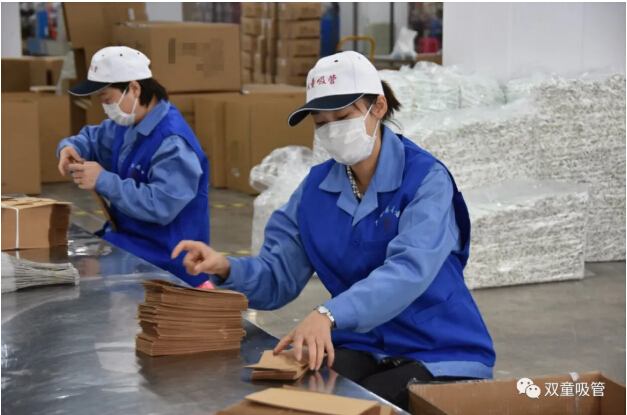 2月25日開(kāi)始,上崗的工會(huì)機(jī)關(guān)干部、婦聯(lián)志愿者相繼來(lái)到“雙童”,經(jīng)過(guò)測(cè)量體溫、消毒登記、查看健康碼、更衣?lián)Q帽等一系列防疫流程后,進(jìn)入了包裝車間。