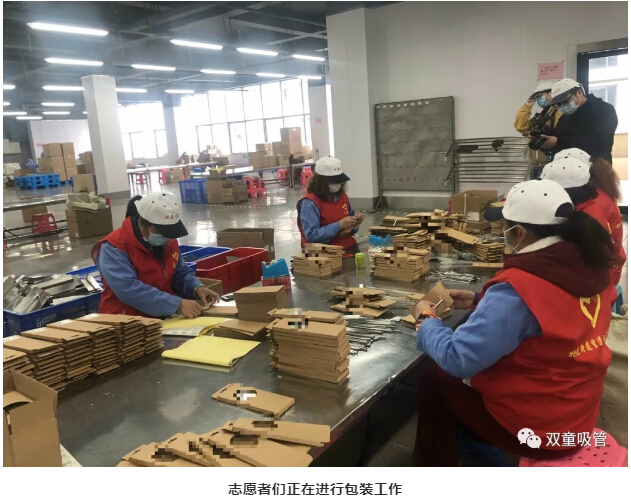 原來(lái),為了有序幫助企業(yè)復(fù)工復(fù)產(chǎn),連日來(lái),由義烏市工會(huì)、婦聯(lián)等政府單位組織的多支志愿者隊(duì)伍來(lái)到“雙童”生產(chǎn)一線免費(fèi)當(dāng)“幫工”,解決企業(yè)的燃眉之急。