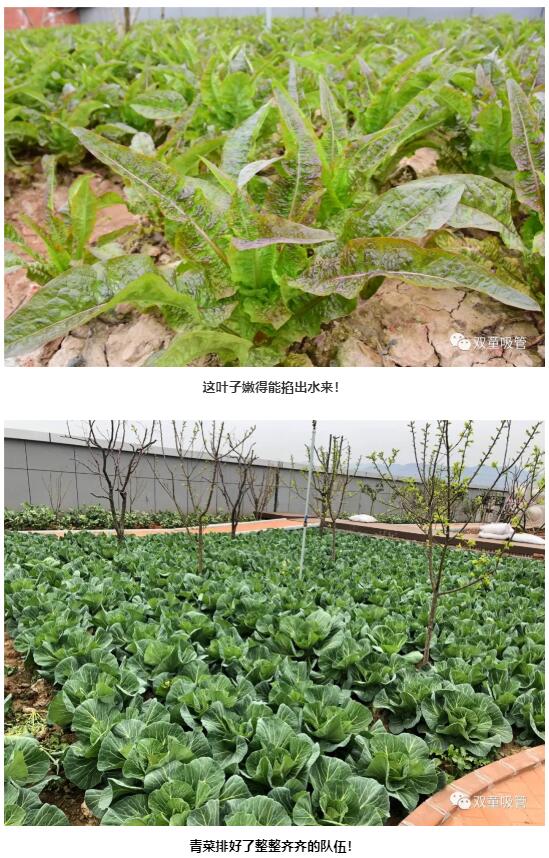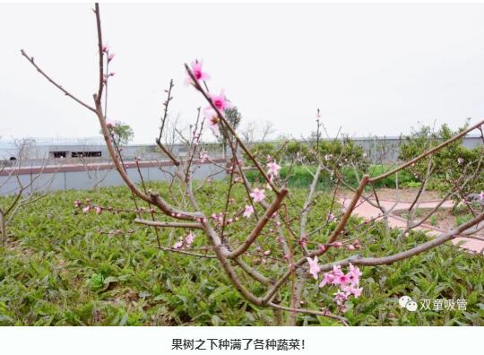 “雙童”的“空中果園”里,也少不了蔬菜的身影,果樹之下,是一片片綠油油的蔬菜。