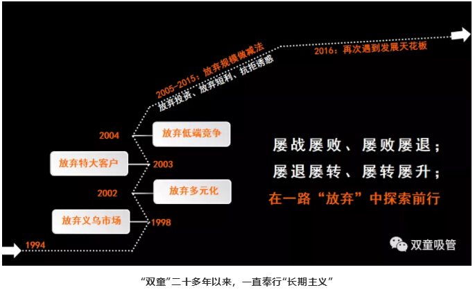 答:這些年來,‘’活下去”確實已經成為“雙童”最大的使命。對我們而言,提出“活下去”這樣一種危機理論,是因為在外部動蕩環(huán)境下,計劃沒有變化快,這就要求企業(yè)做出轉變,這種轉變是內在的,其本質是提醒組織成員,通過直面“死亡”,獲得反悟,讓自己重生。并且,我們所說的“活下去”,并不是茍且偷生,而是要有價值、有尊嚴地“活下去”,唯有如此,這樣的使命對“雙童”的長期發(fā)展才更有意義。