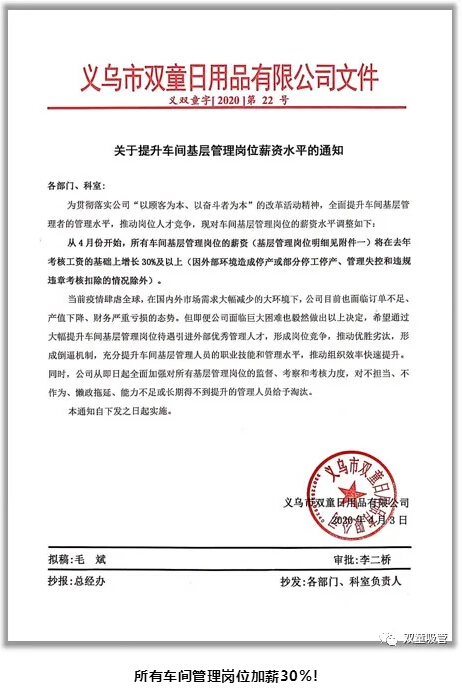 對此,“雙童”樓仲平卻認(rèn)為:降薪裁員潮來襲,這讓更多的優(yōu)秀人才處于流動當(dāng)中。此時,“雙童”不僅借勢展開了企業(yè)第二波改革活動,并借力于這樣一個機會,逆勢下發(fā)布了加薪文件,希望引進更多的優(yōu)秀人才。